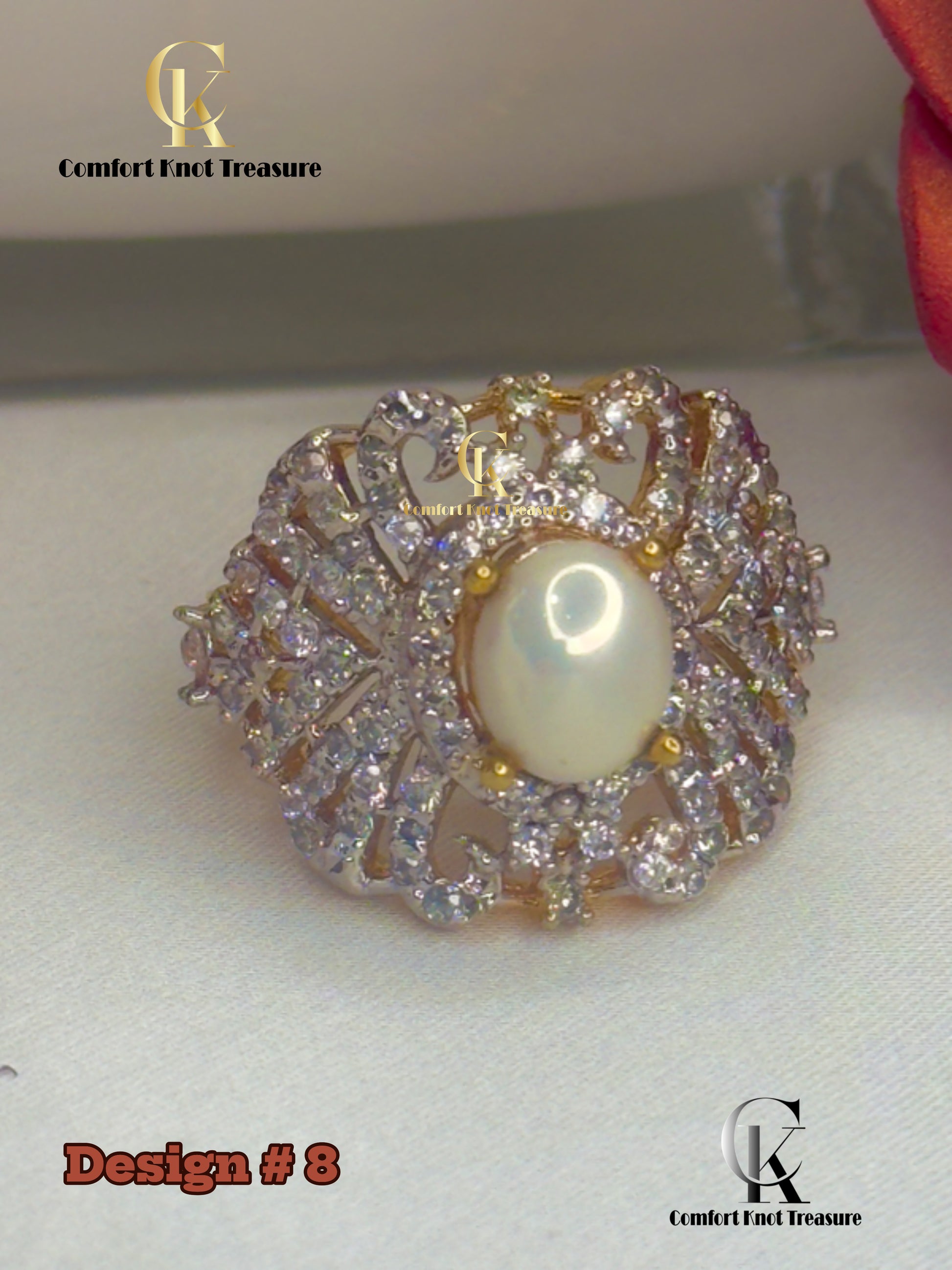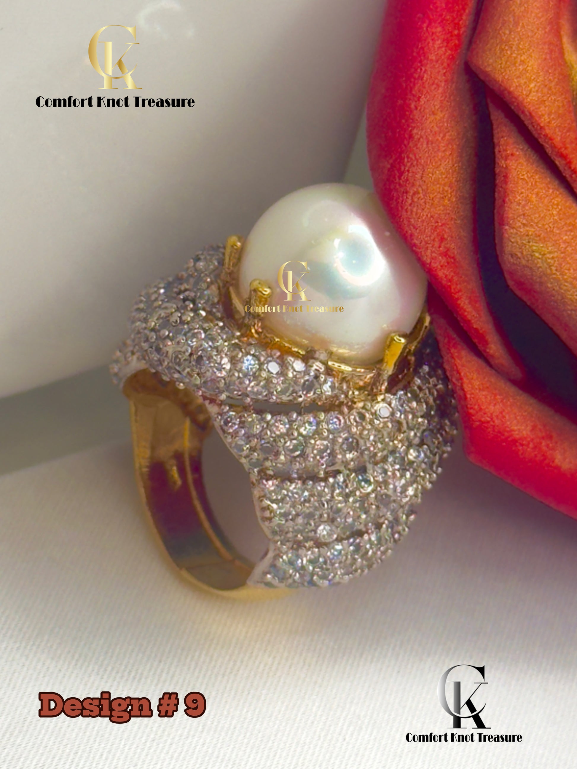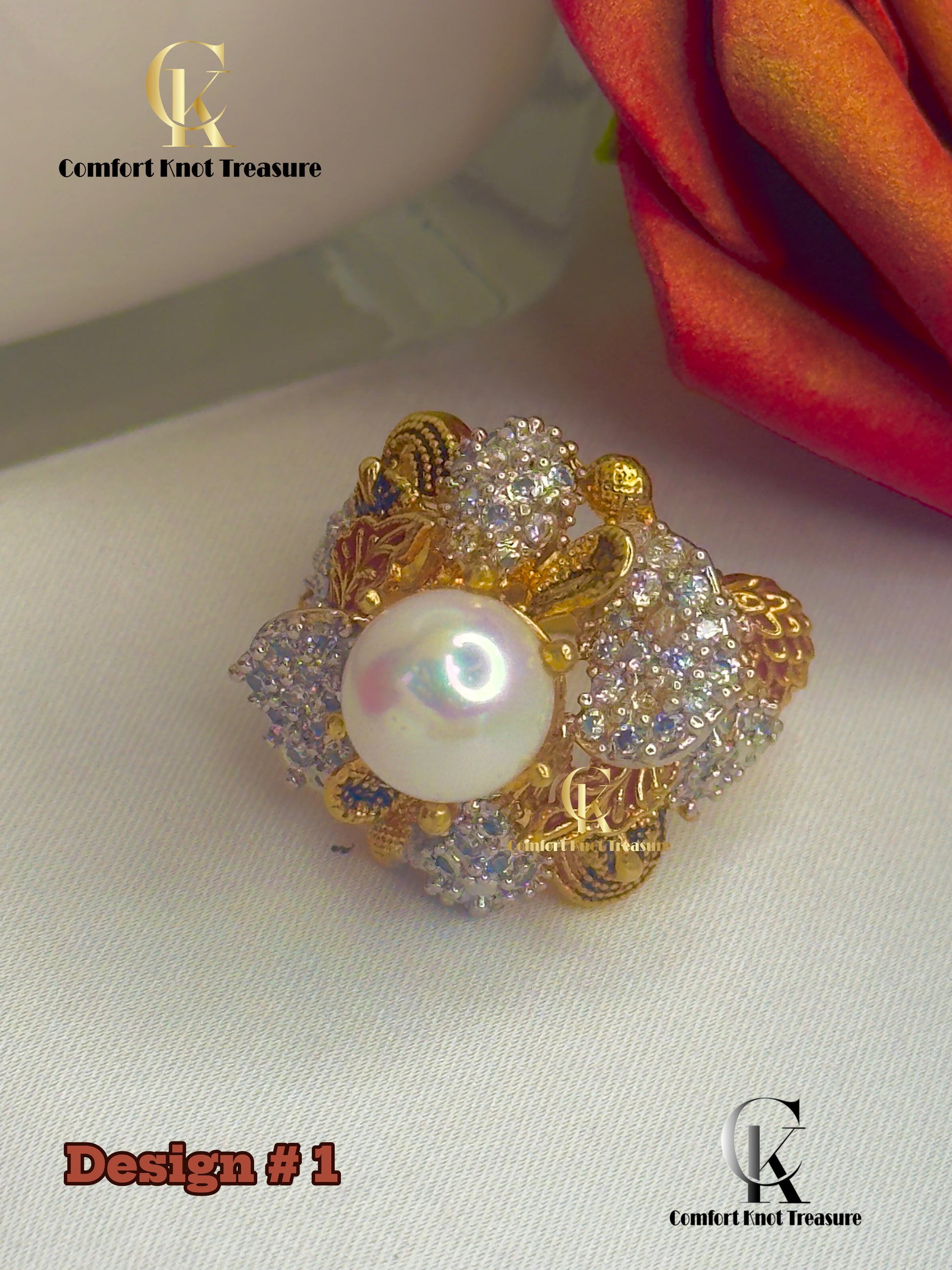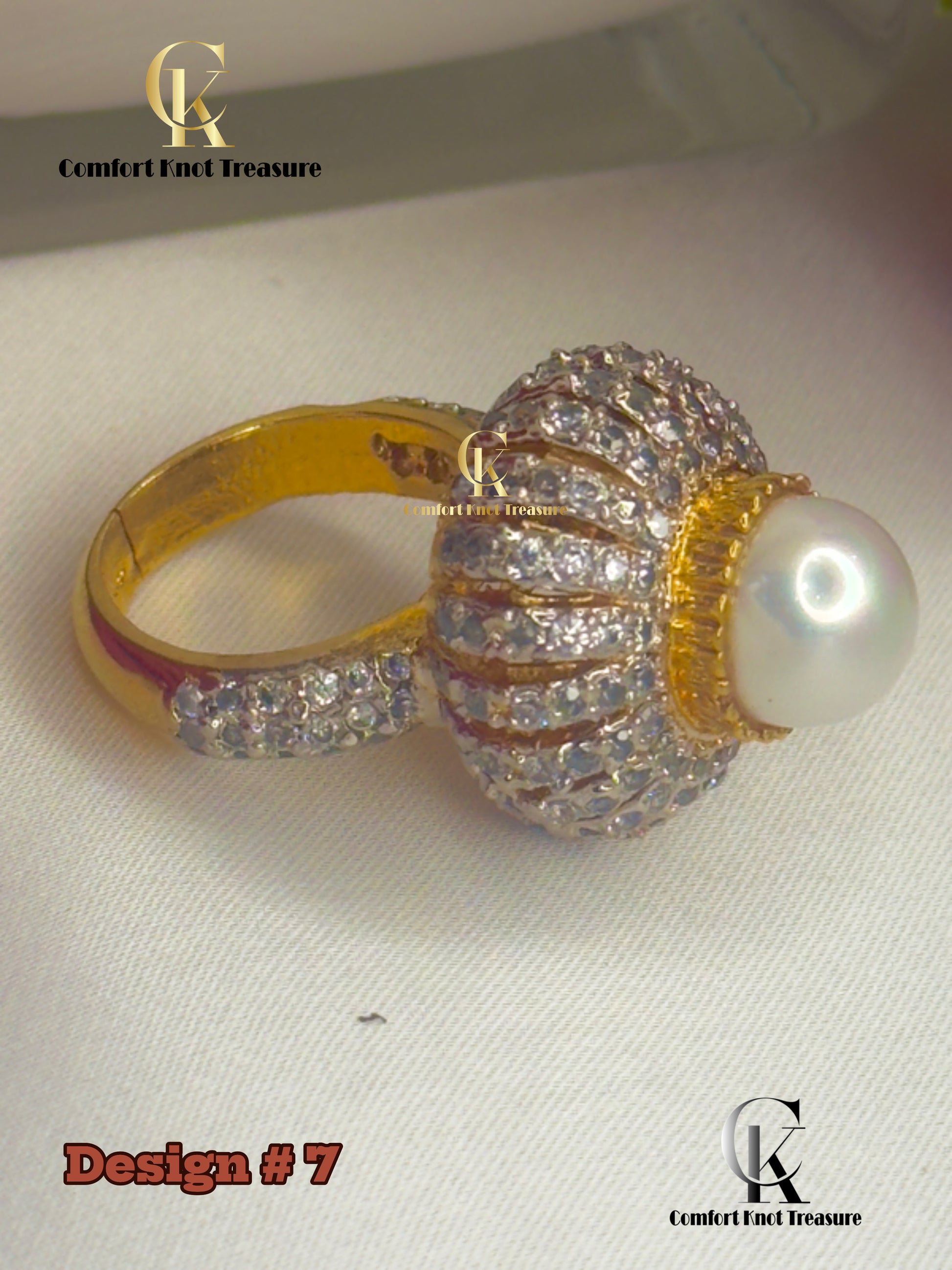 Diamond Aracadia Pearl Zerkon Rings | 24k Gold Plated | Adjustable RNG
