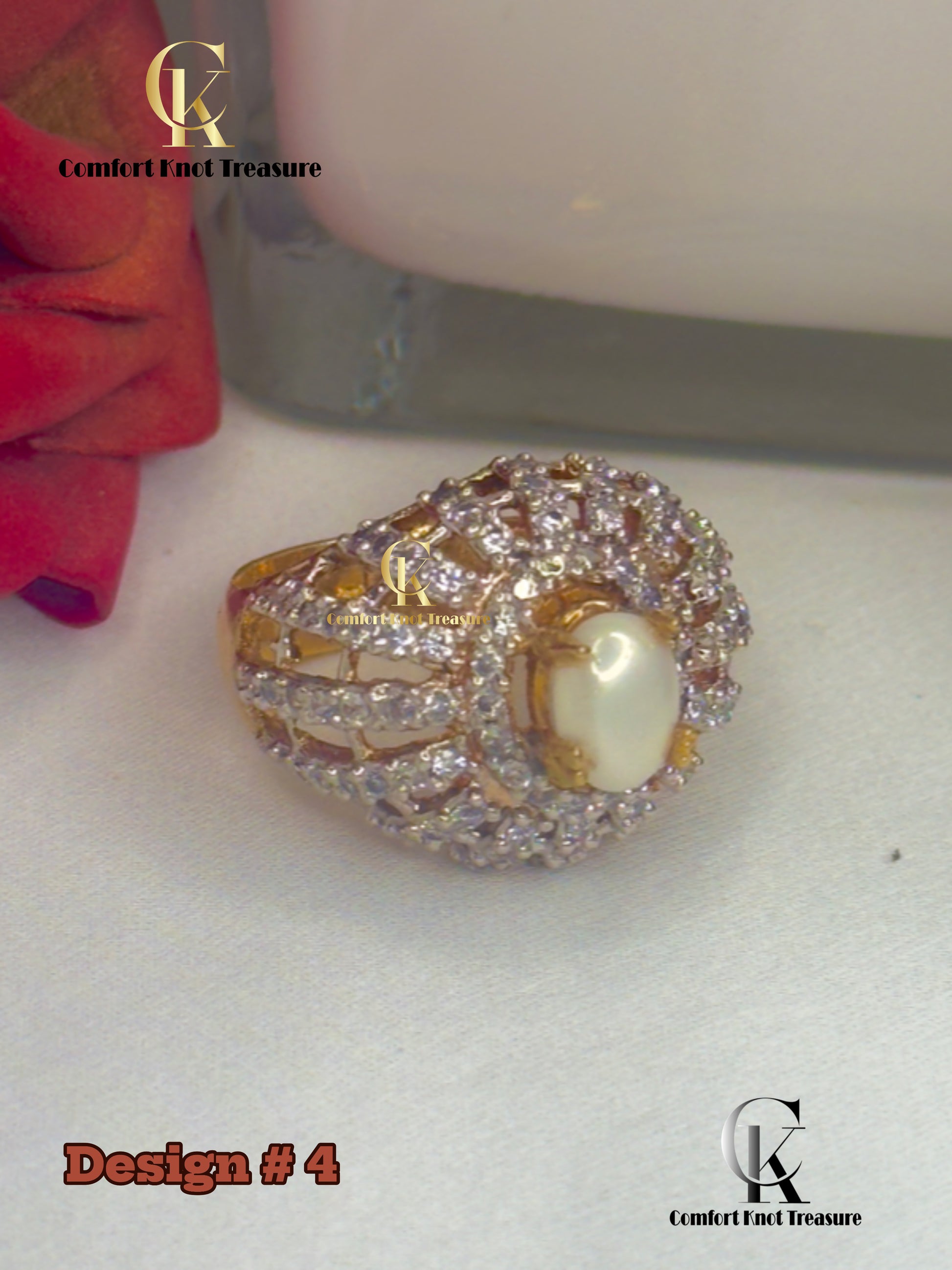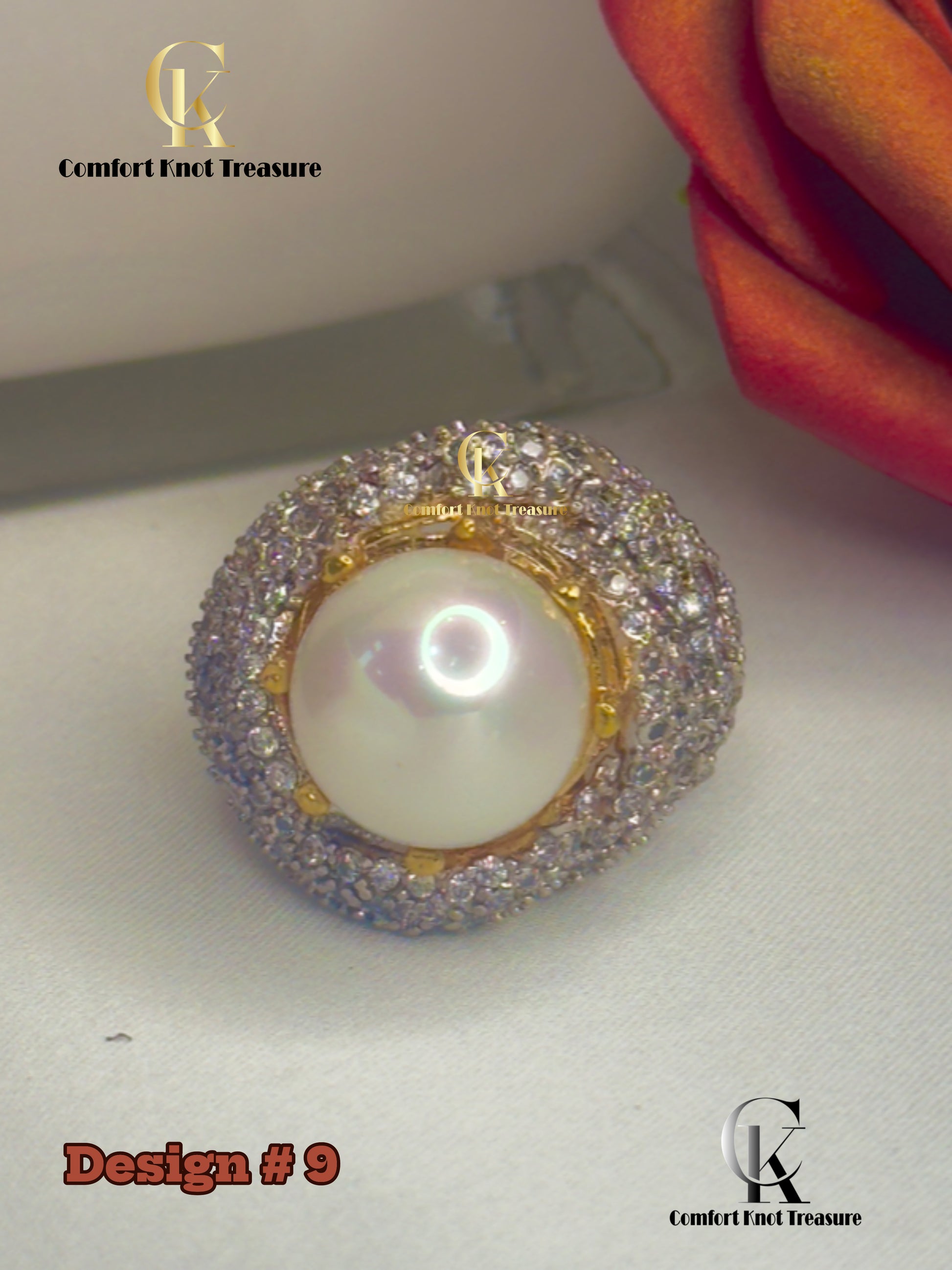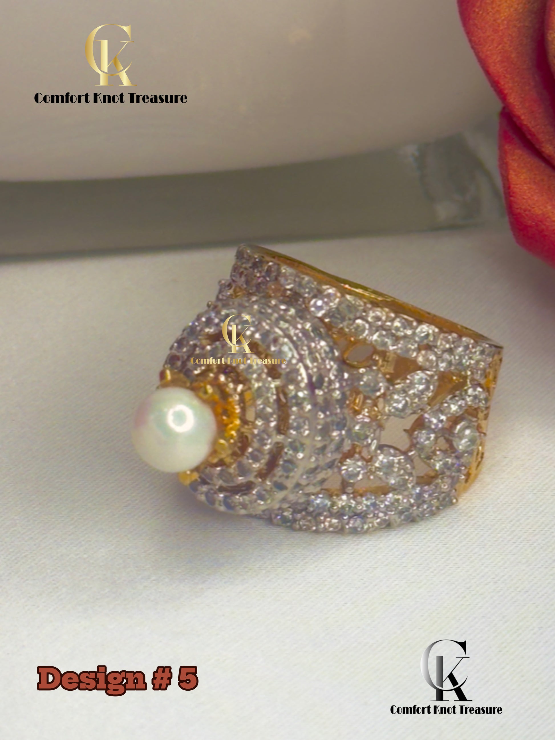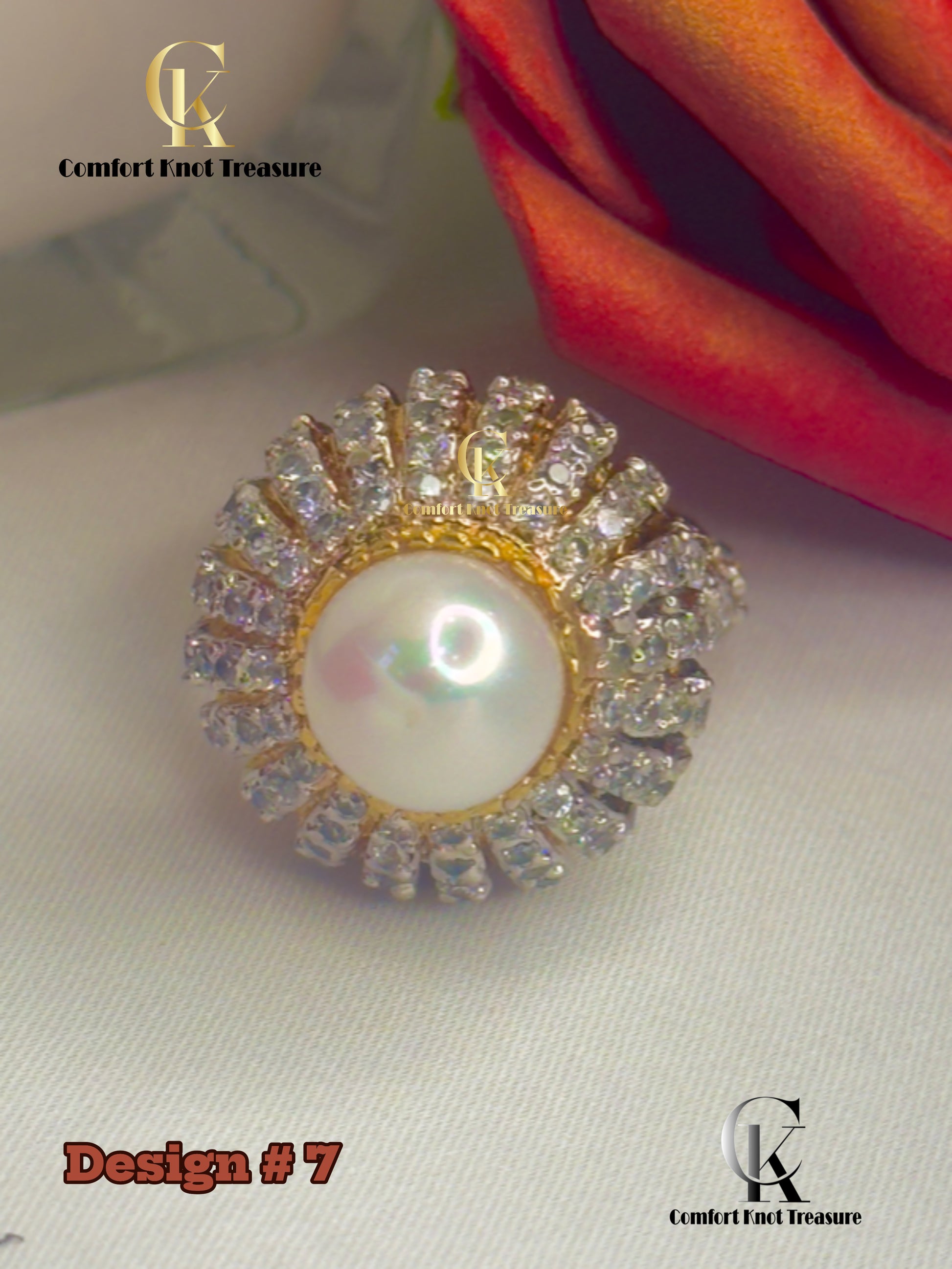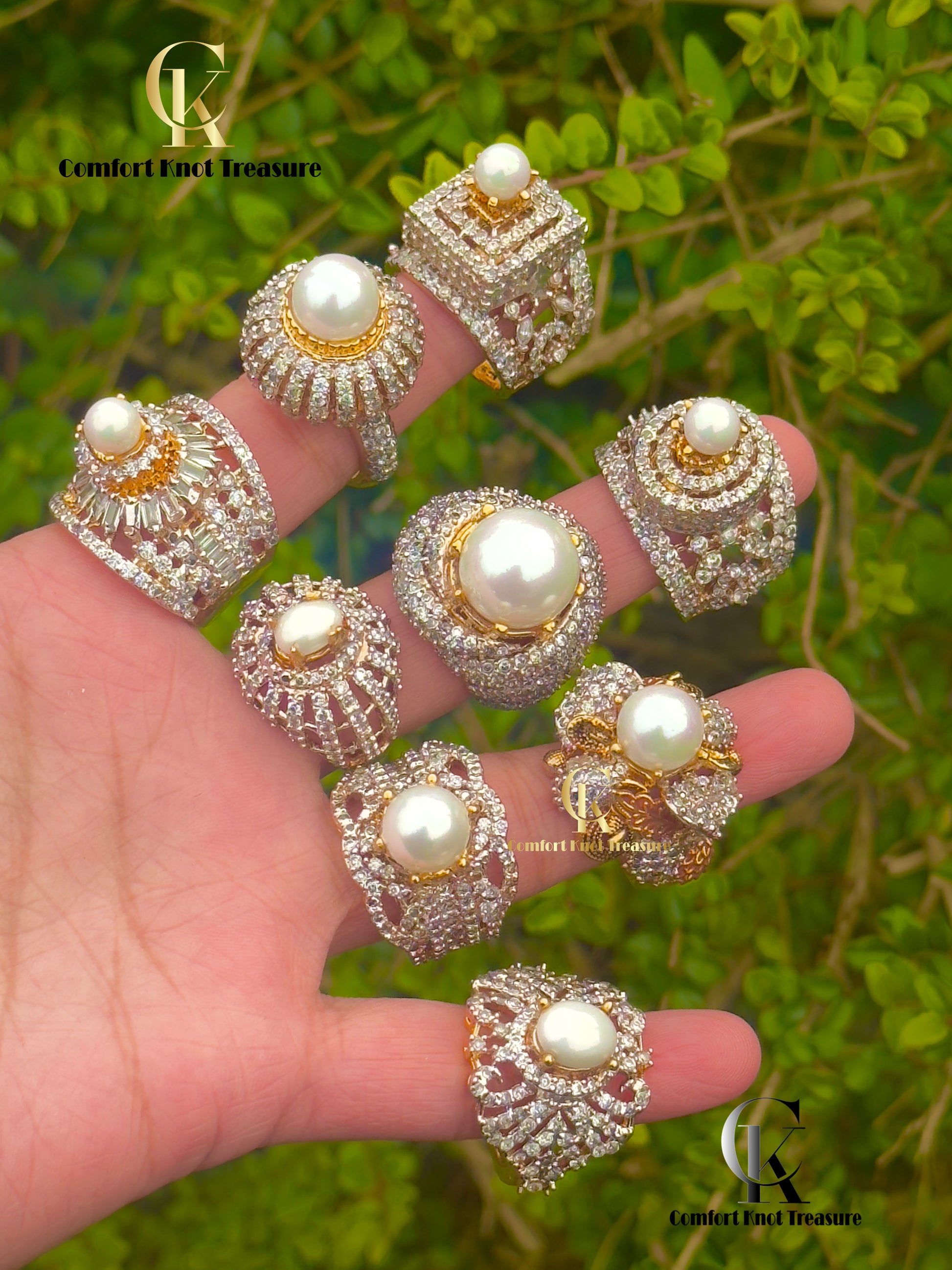 Diamond Aracadia Pearl Zerkon Rings | 24k Gold Plated | Adjustable RNG