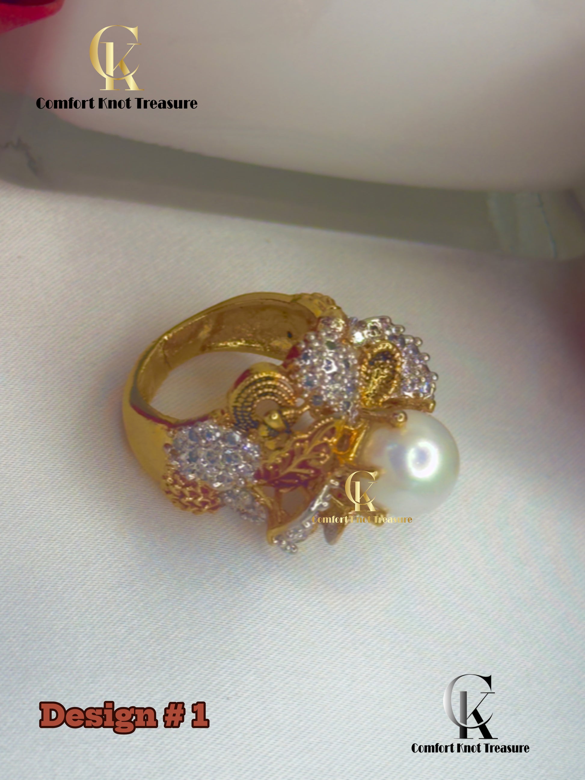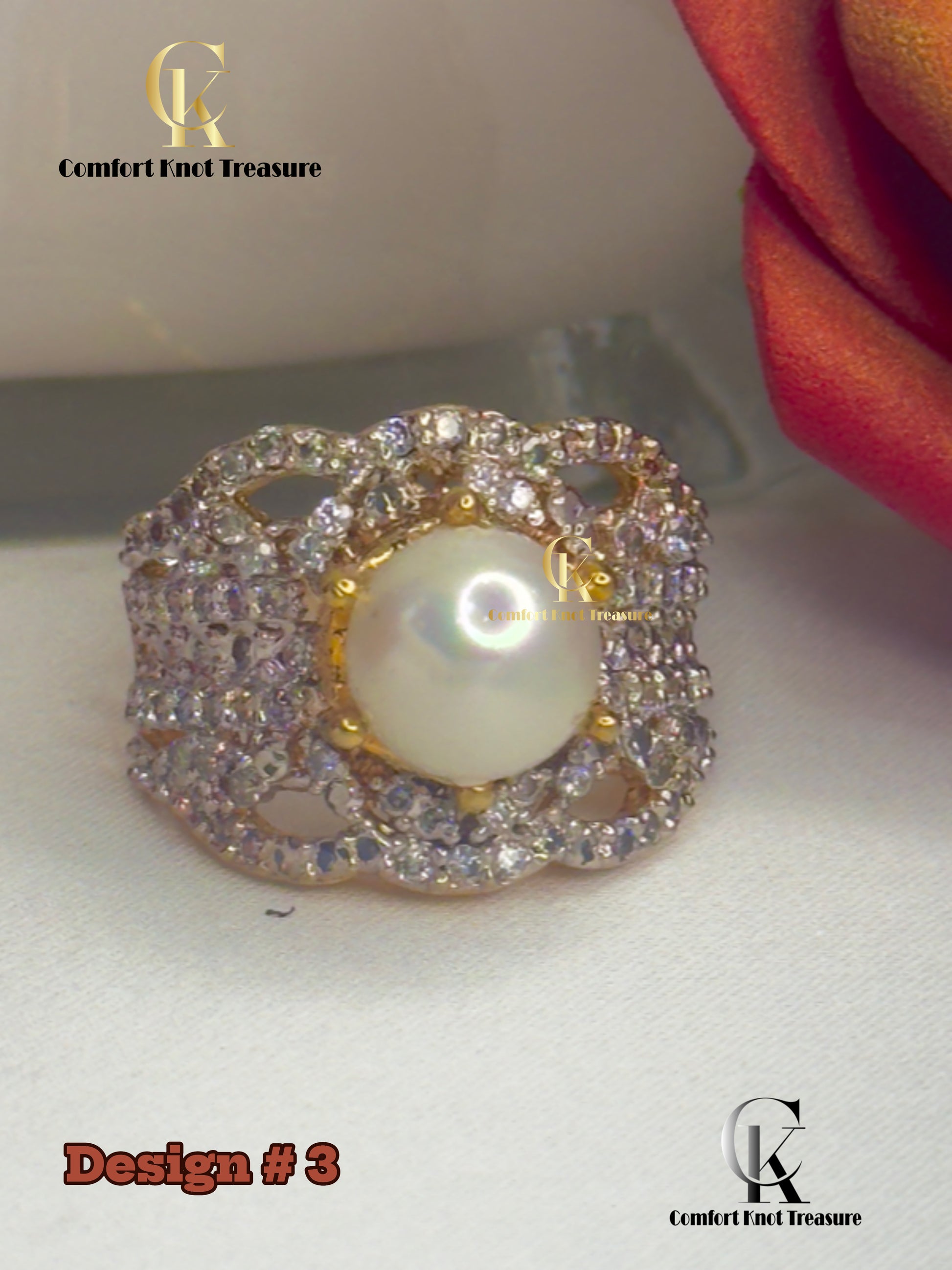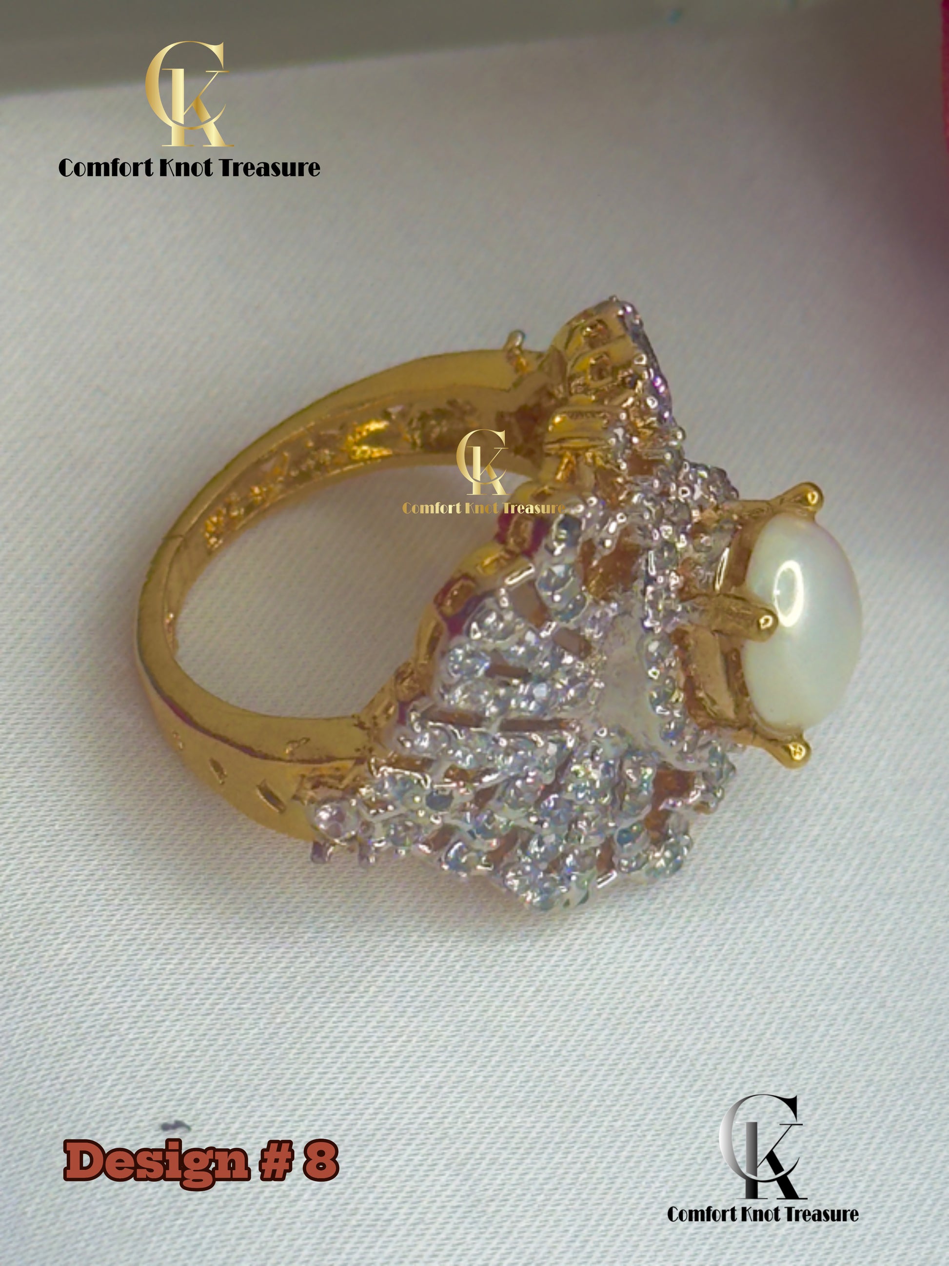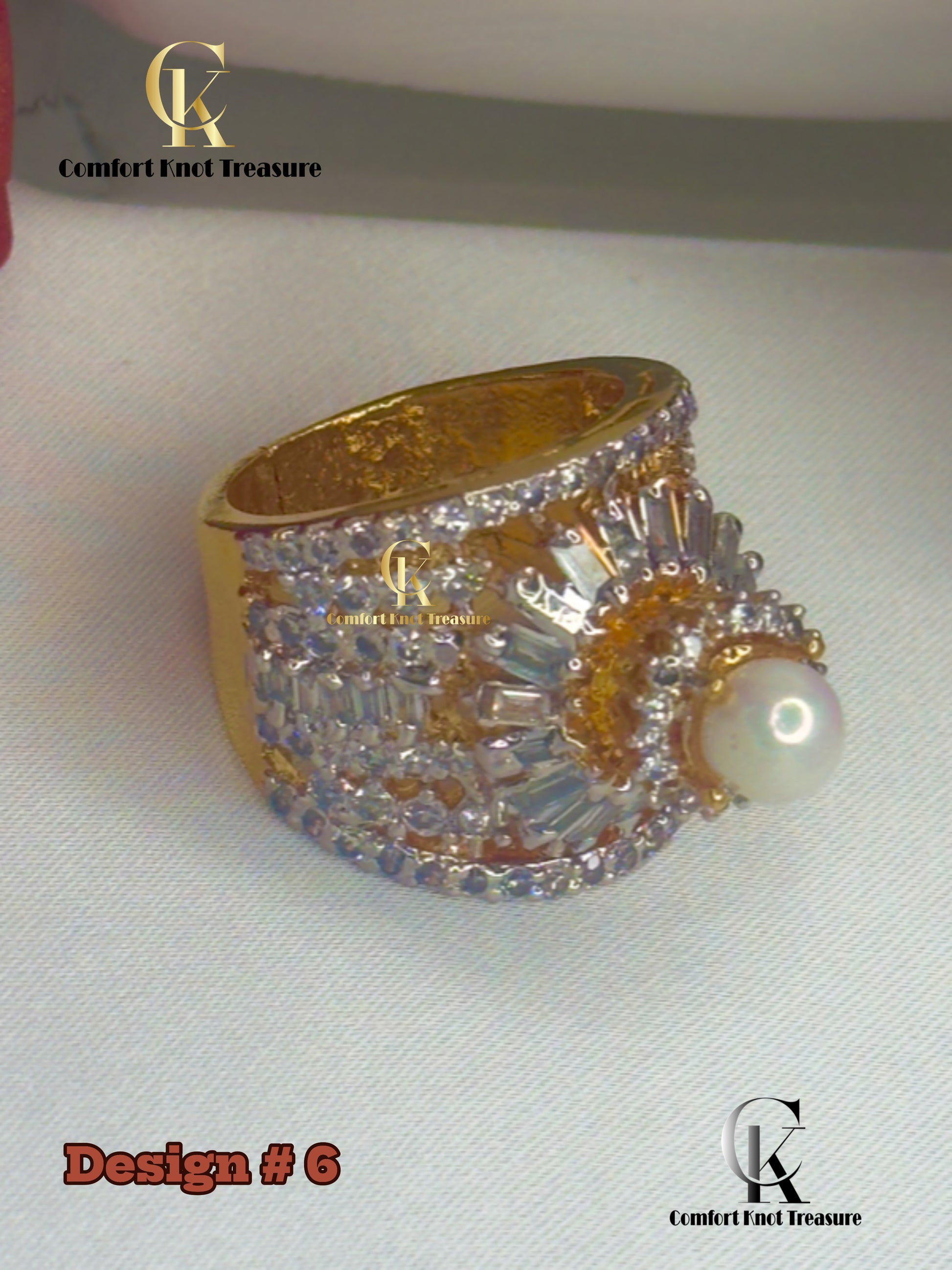 Diamond Aracadia Pearl Zerkon Rings | 24k Gold Plated | Adjustable RNG