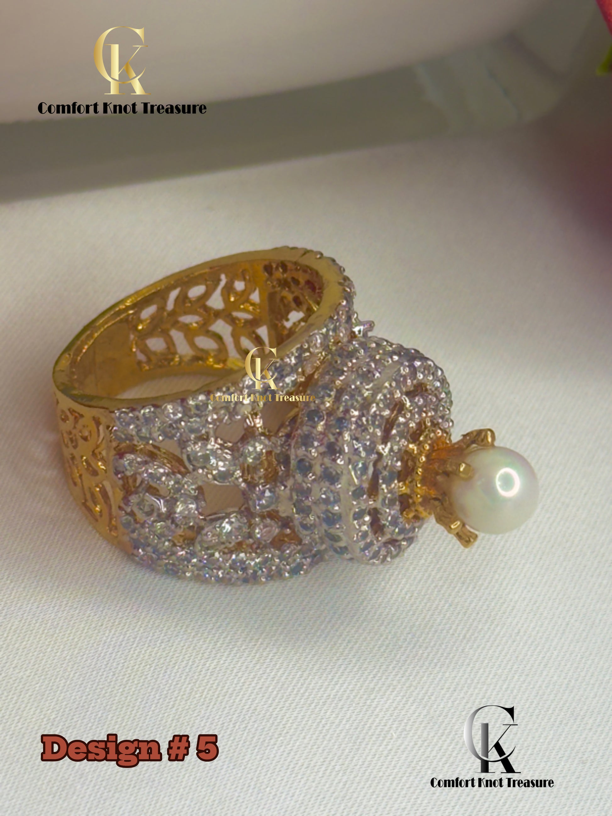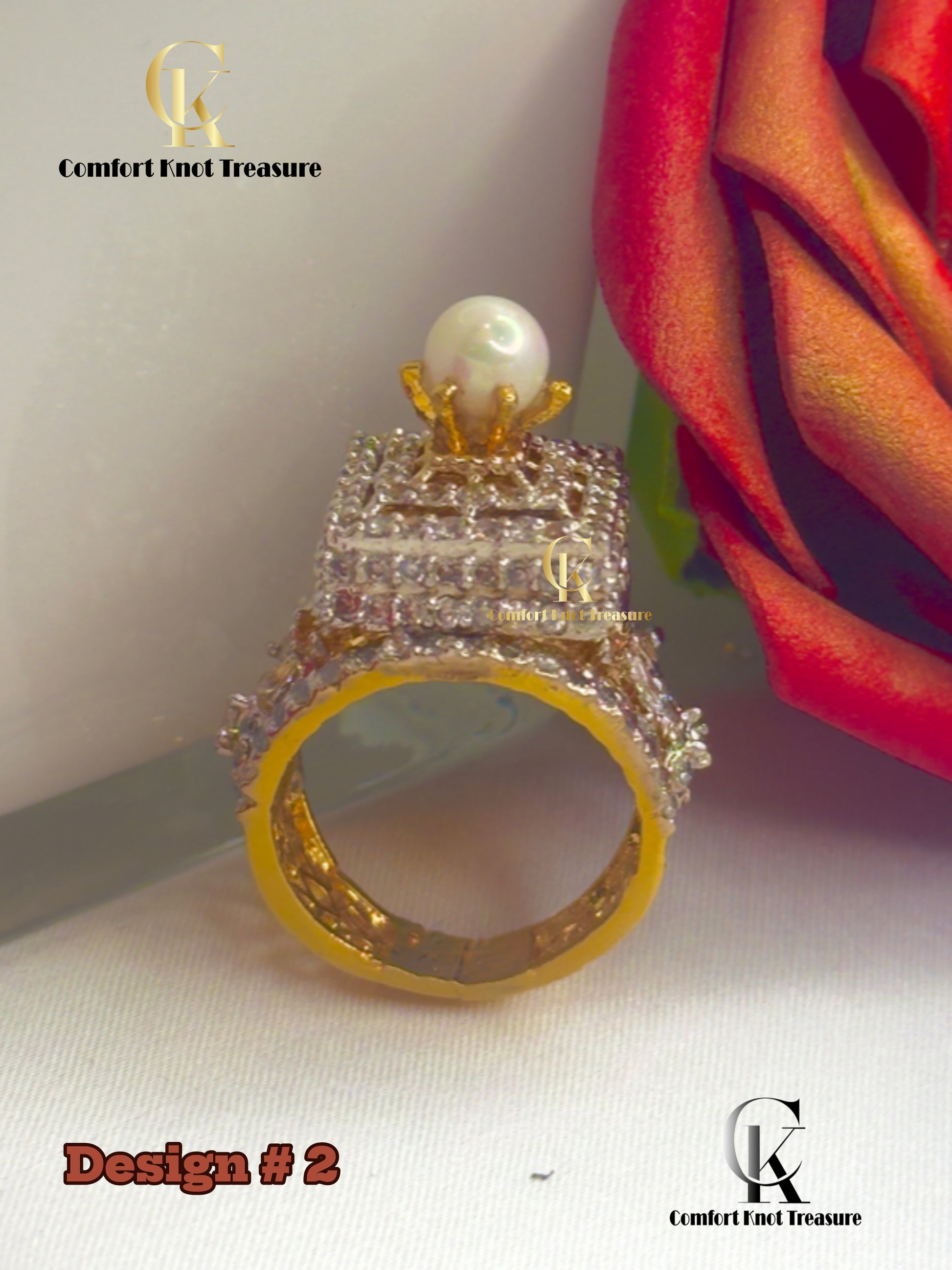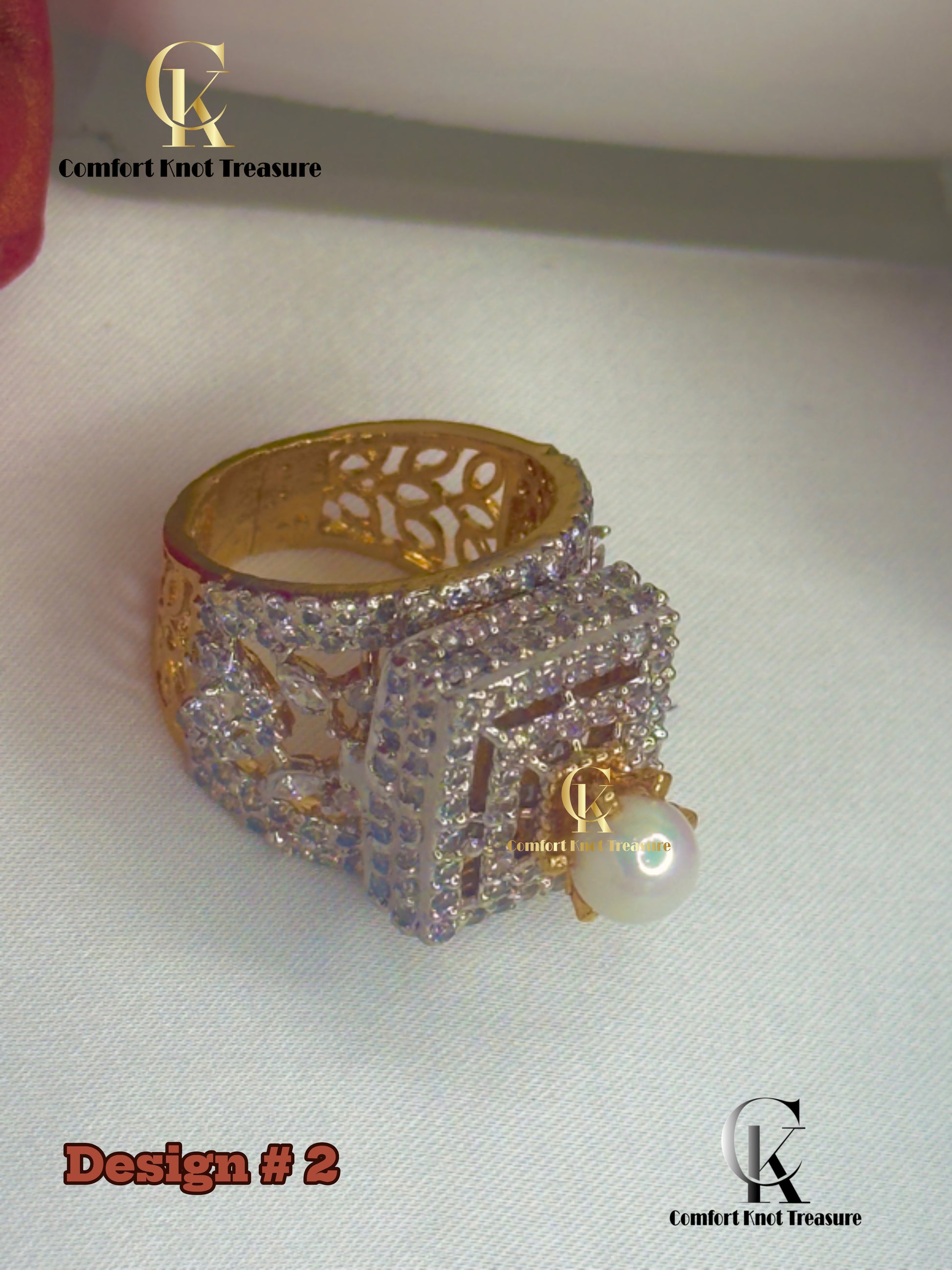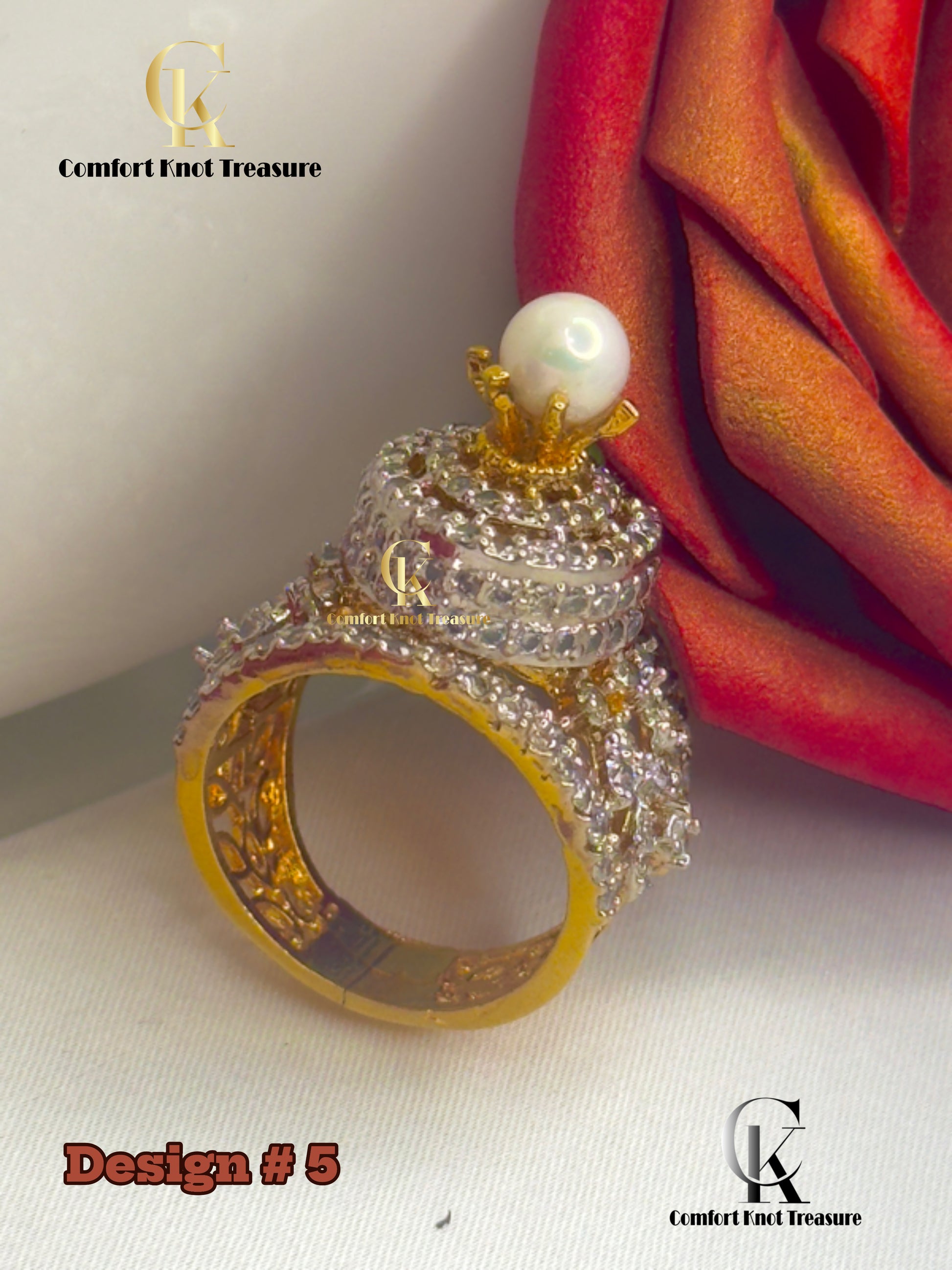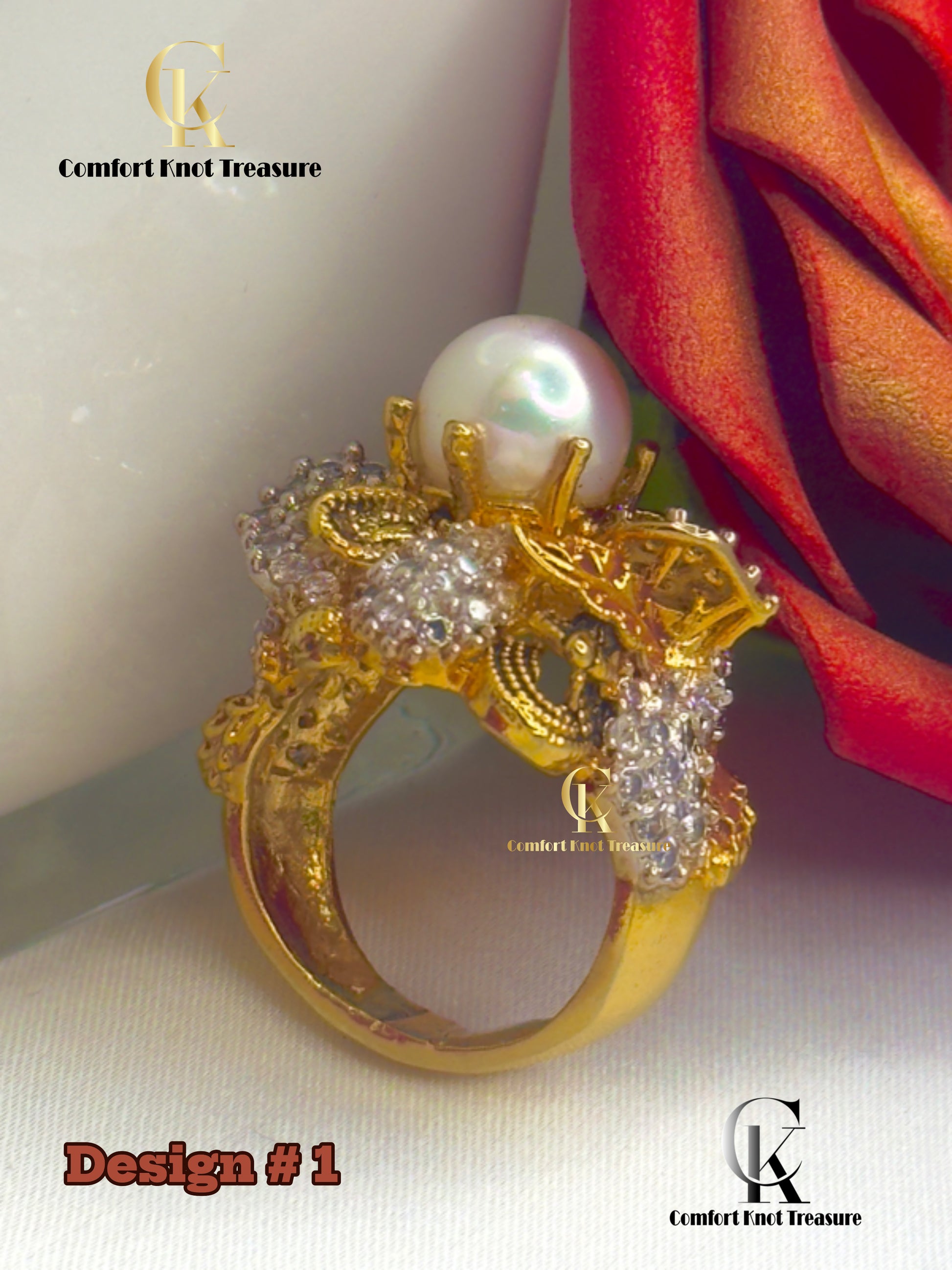Diamond Aracadia Pearl Zerkon Rings | 24k Gold Plated | Adjustable RNG